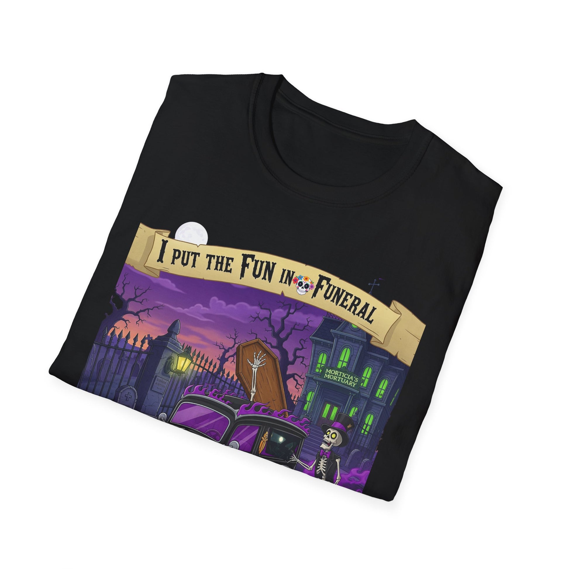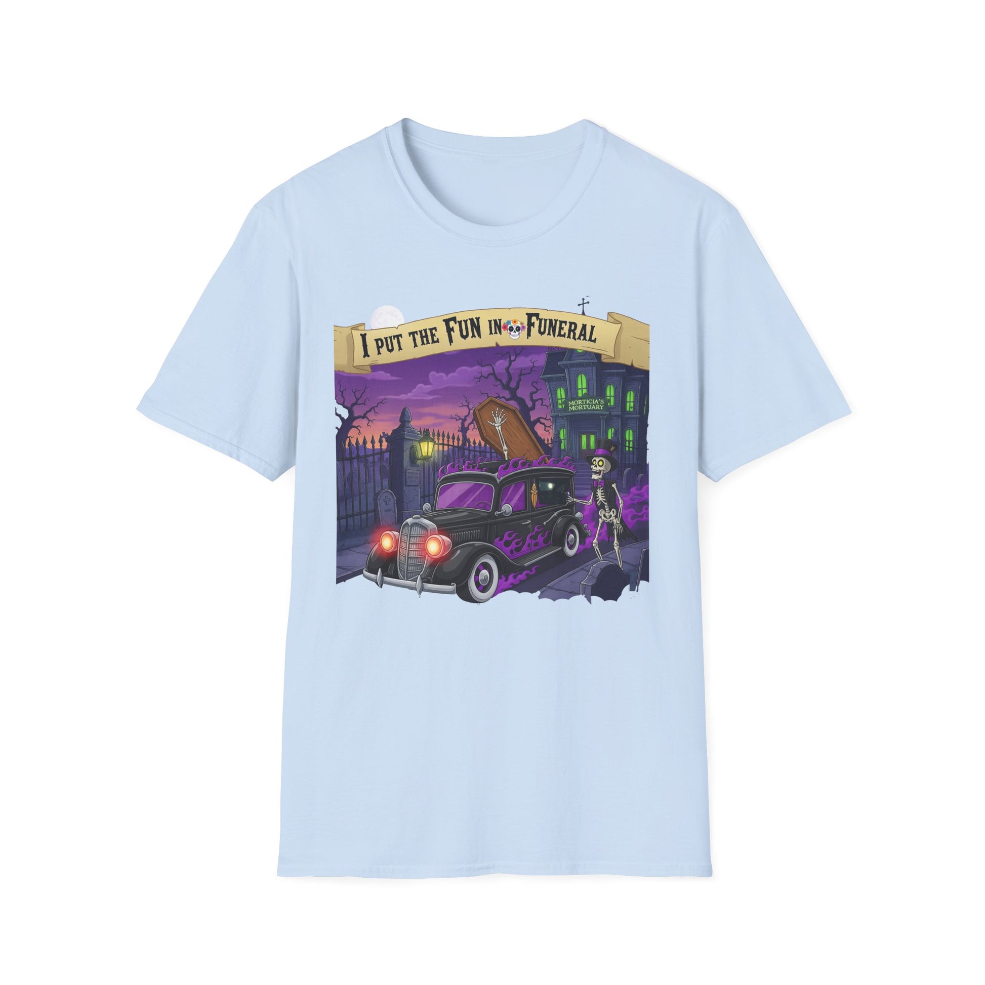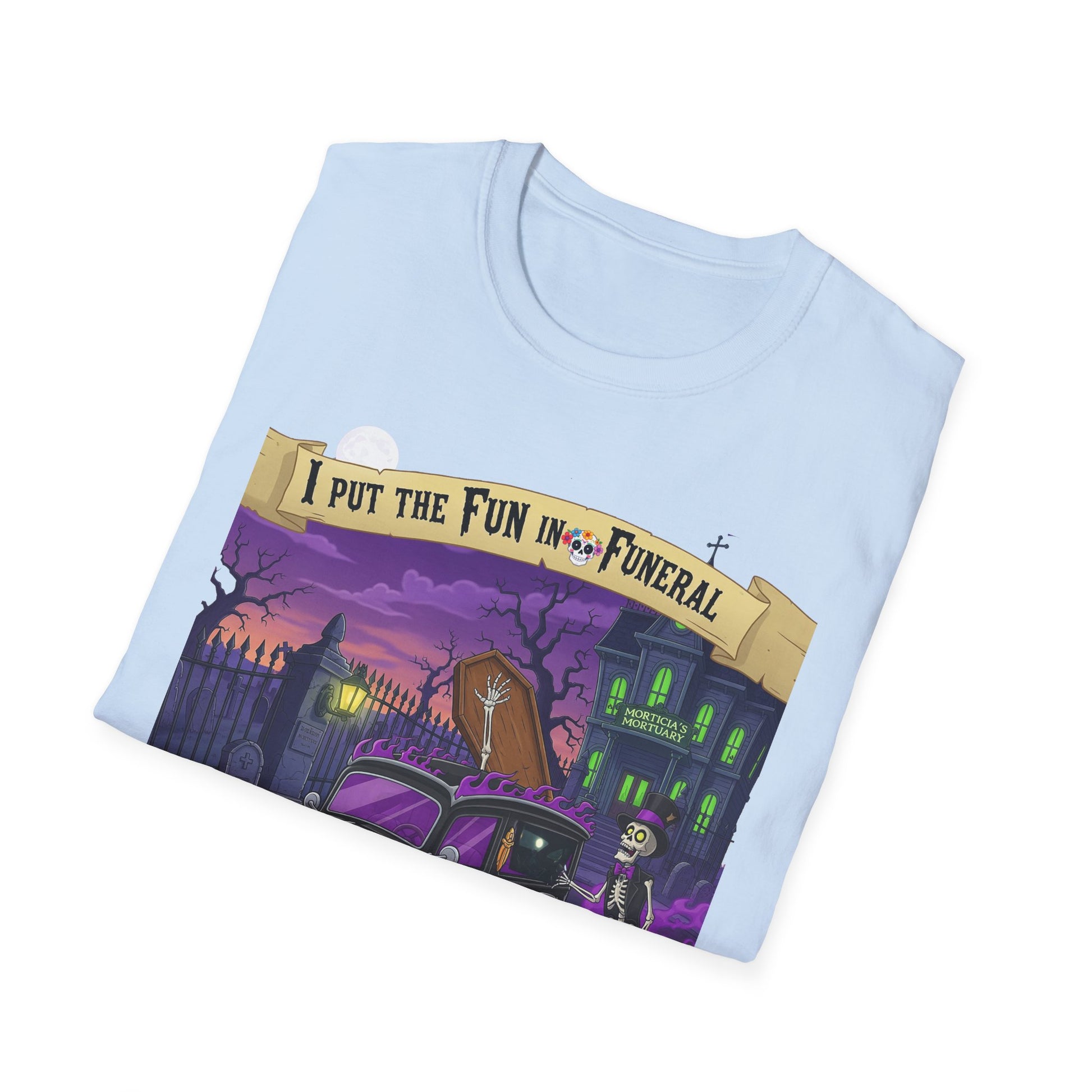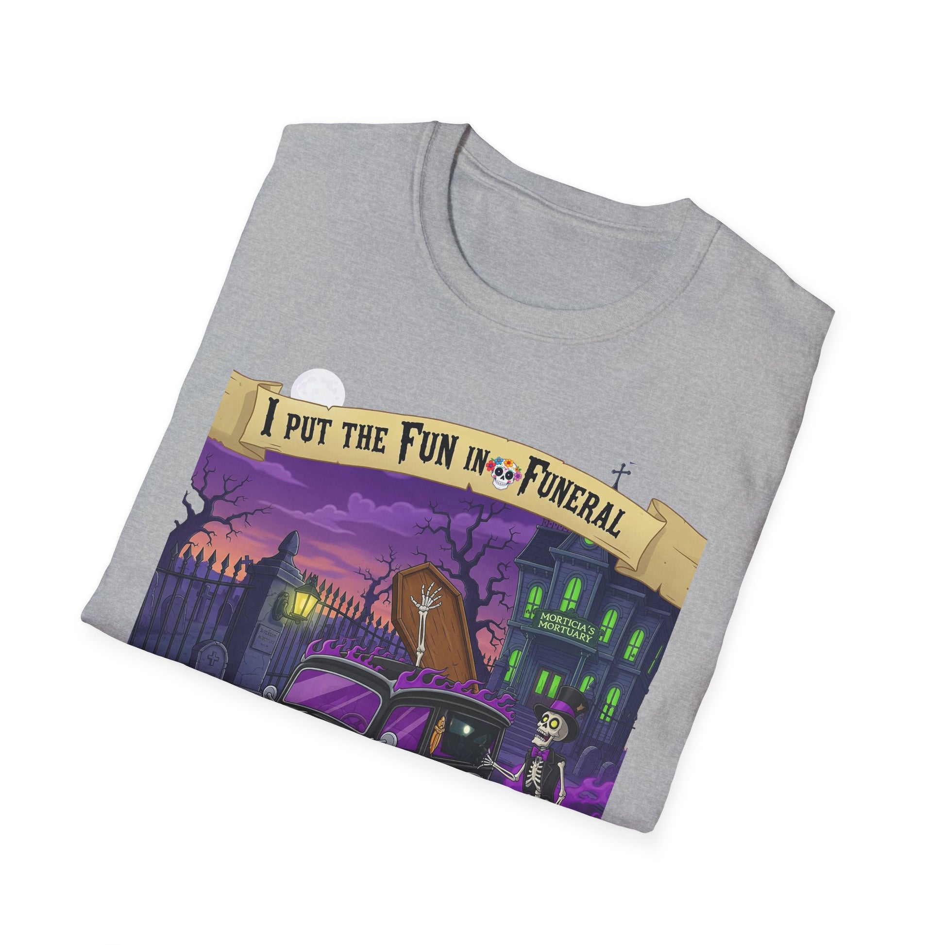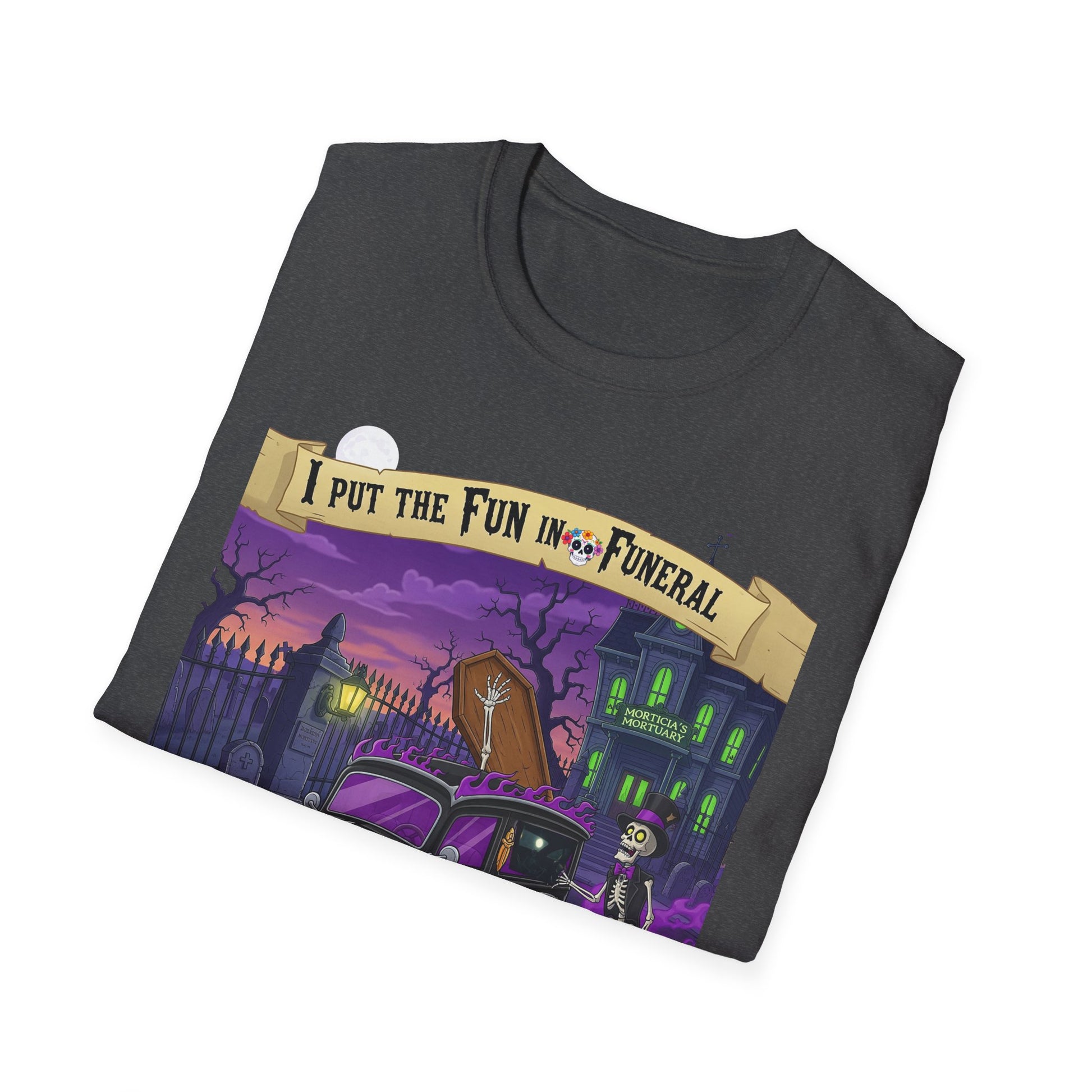 I Put The Fun In Funeral T-Shirt, I Put the Fun in Funeral Tee, Unisex Graphic Shirt, Halloween Apparel, Quirky Casual Wear